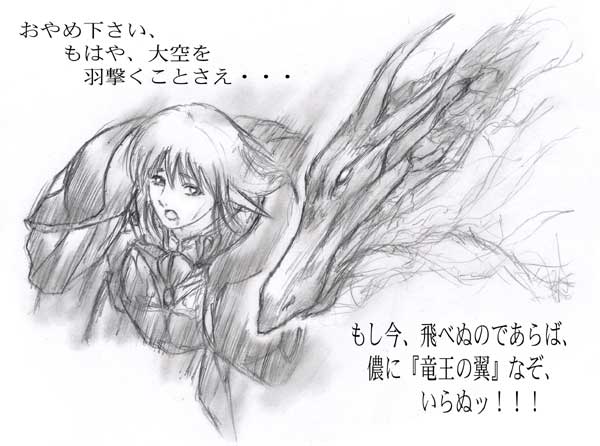 今日に至る二千年という長き年月に渡り、漆黒の魔王という存在を影で支え続けてきた竜王の翼は、もう、天空へと羽撃くことはないのだった……。